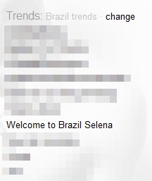 Muito perto da chegada de Selena no Brasil, os fãs da cantora resolveram homenageá-la no twitter com a tag“Welcome to Brazil Selena” que está na 7ª posição dos Trending Topics da rede social. Confira abaixo: ![]() Vamos continuar postando para a tag subir mais e ir para os Trends mundiais! ATUALIZAÇÃO: A Tag saiu dos Trends do Brasil, mas agora está na 4ª posição dos Trends de São Paulo. |