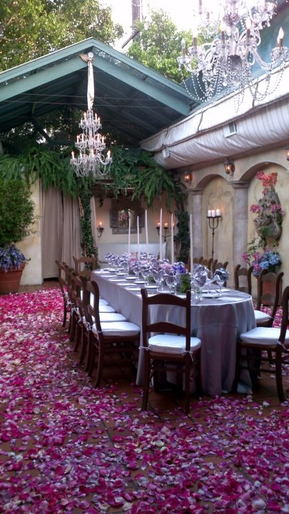 A mãe de Selena Gomez planejou um jantar para 12 pessoas na parte privada do restaurante Il Cielo, o chão do local estava coberto com pétalas de rosa. A festa começou com cocktails (Ginger Ale* para Gomez e Coca-Cola para Bieber). Em seguida veio o jantar e logo após um bolo de chocolate coberto de amoras e chantily.