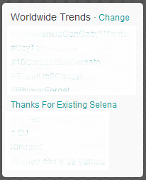 Continuando uma semana cheia de tags para Selena, na noite de hoje os dreamers colocaram a tag “Thanks for Existing Selena” (Obrigada Por Existir Selena) nos Trending Topics mundiais. Confira: